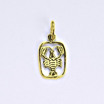 Zlatý přívěšek znamení zvěrokruhu rak. Celková výška přívěšku je 17 mm. Orientační váha přívěsku je 0,61 g. Materiál je 14 karátové žluté zlato 585/1000.