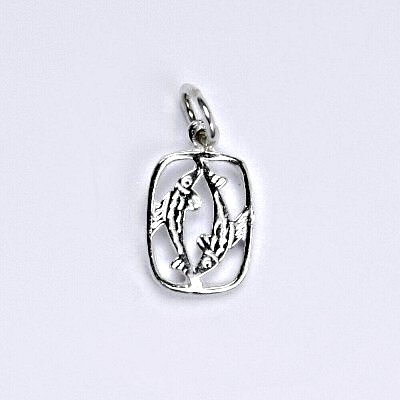 Zlatý přívěšek znamení zvěrokruhu ryba. Celková výška přívěšku je 17 mm. Orientační váha přívěsku je 0,50 g. Materiál je 14 karátové bílé zlato 585/1000.
