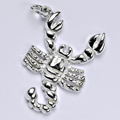 Zlatý přívěšek znamení zvěrokruhu štír. Celková výška přívěšku je 28 mm. Orientační váha přívěsku je 2,56 g. Materiál je 14 karátové bílé zlato 585/1000.
