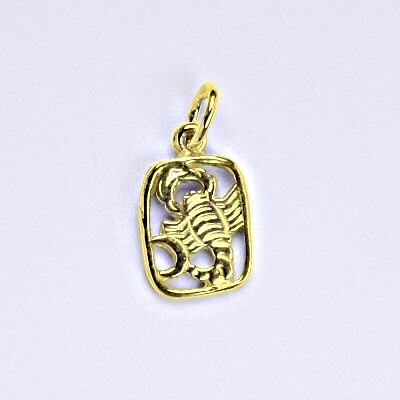 Zlatý přívěšek znamení zvěrokruhu štír. Celková výška přívěšku je 17 mm. Orientační váha přívěsku je 0,78 g. Materiál je 14 karátové žluté zlato 585/1000.