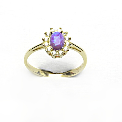 Zlatý prsten Kate, syntetický fialový opál, čiré zirkony, žluté i bílé zlato - T 1480