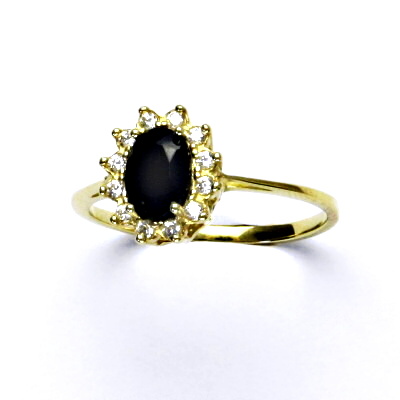 Zlatý prsten Kate, žluté i bílé zlato, přírodní černý spinel (pleonast), čiré zirkony - T 1480