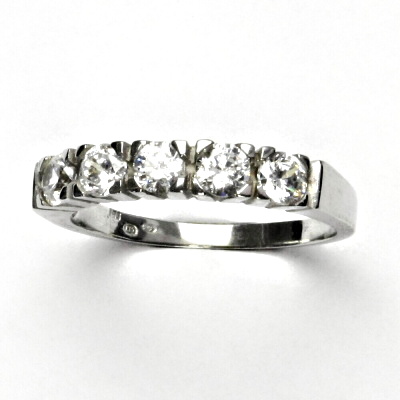 Zlatý prsten je zdoben pěti čirými zirkony o průměru 4,15 mm.