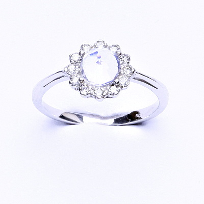 Zlatý prsten, bílé zlato, přírodní křišťál, čiré zirkony, T 1495
