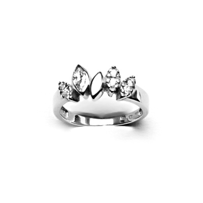 Zlatý prsten, čiré zirkony, bílé zlato - VR 10