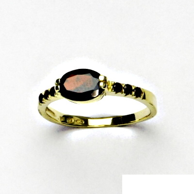 Zlatý prstýnek je zdoben přírodními granáty o průměru 1,30 mm a oválným o rozměru 7x5 mm. Prsten nabízíme v různých velikost. Materiál prstenu je zlato 585/1000. Orientační váha prstenu ve velikosti 54 je 2,2 g.
