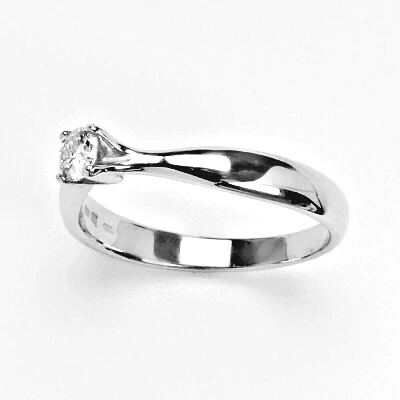 Zlatý prsten z bílého zlata s diamantem. Průměr diamantu je 3,25 mm kvality Si1G a má cca 0,13 karátů. Šperk je vyhotoven ze zlata ryzosti 585/1000 a má povrchovou úpravu čisté rhodium. Orientační hmotnost prstenu je 2,30 g.