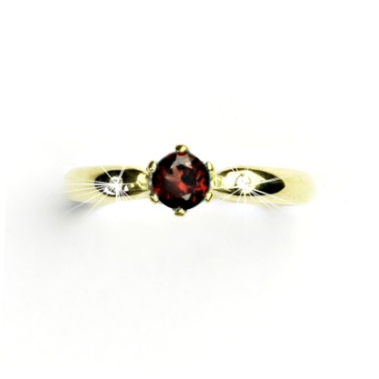 Zlatý prsten s brilianty, přírodní granát, žluté zlato, VLZDR048