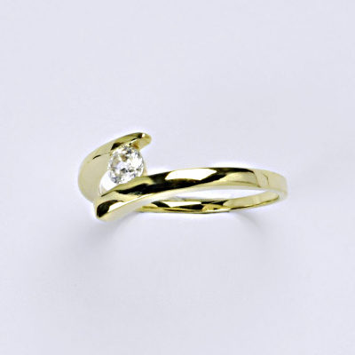 Zlatý prsten s čirým zirkonem ze žlutého zlata. Prsten lze použít jako zásnubní. Velikost zirkonu je 3 mm.