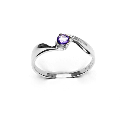 Zlatý prsten se zirkonem ametyst, bílé zlato, T 1026