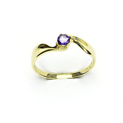 Zlatý prsten se zirkonem ametyst, žluté zlato, T 1026