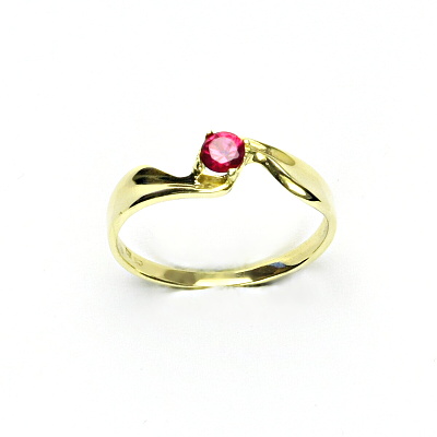 Zlatý prsten se zirkonem rubín, žluté zlato, T 1026