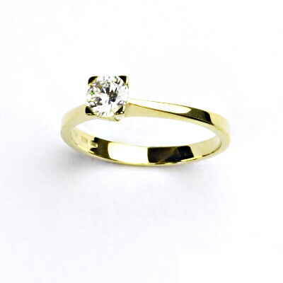 Prstýnek ze žlutého zlata je zdoben čirým zirkonem o průměru 5,25 mm.