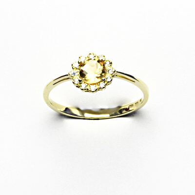 Zlatý prsten, žluté zlato, přírodní citrín, čiré zirkony, T 1495