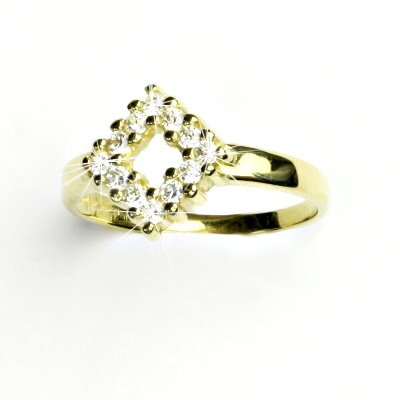 Zlatý prsten, žluté zlato, prstýnek s čirými zirkony, VR 190