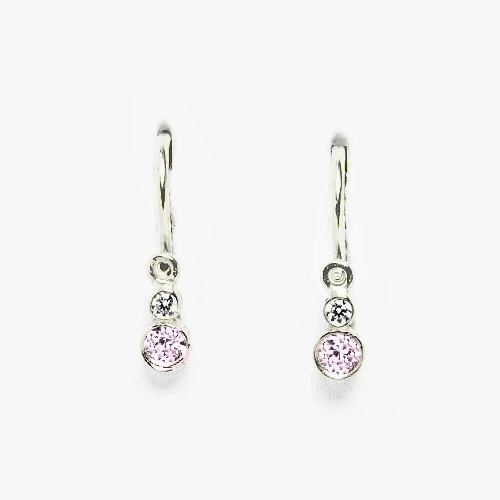 Stříbrné náušnice na klasické dětské zapínání zdobí zirkony čirý a pink