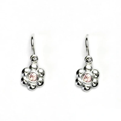 Dětské stříbrné náušnice mají tvar kytičky a jsou zdobeny růžovým zirkonem