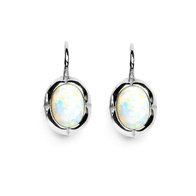 Stříbrné náušnice na klasické patentové zapínání zdobí syntetický opál velikosti 8 x 6 mm .