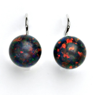 Stříbrné náušnice černý opál 10 mm - NK 1298