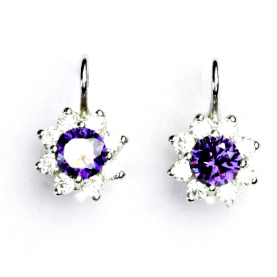 Stříbrné náušnice, čiré zirkony a zirkon ametyst - VE 61