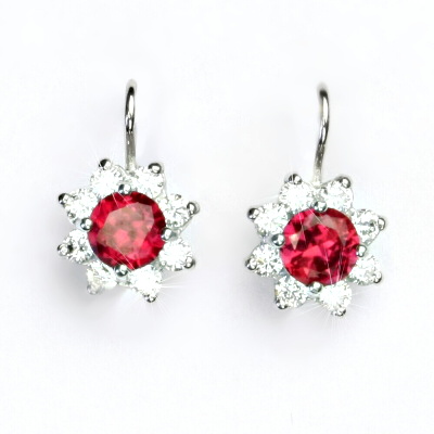 Stříbrné náušnice, čiré zirkony a zirkony rubíny - VE 61