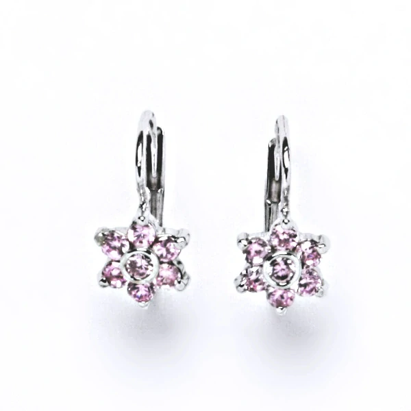 Stříbrné náušnice ve tvaru kytičky na klasické patentové zapínání zdobené růžovými zirkony