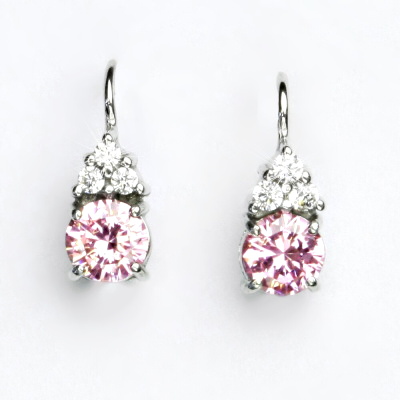 Stříbrné náušnice, zirkony čiré a pink - VE 168