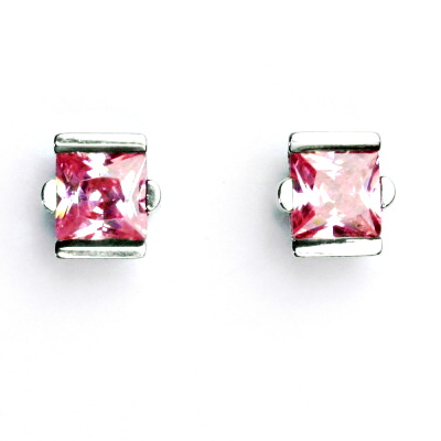 Stříbrné náušnice, pink zirkony 6x6 mm - VE 16