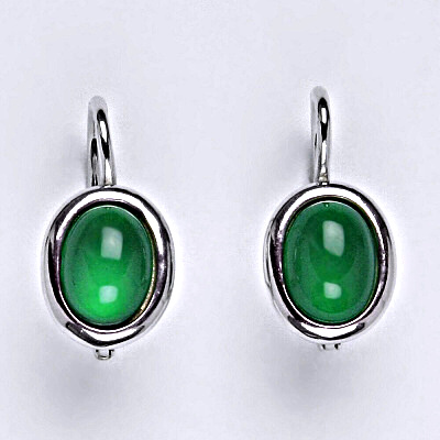 Stříbrné náušnice, přírodní Green agate - NK 1355