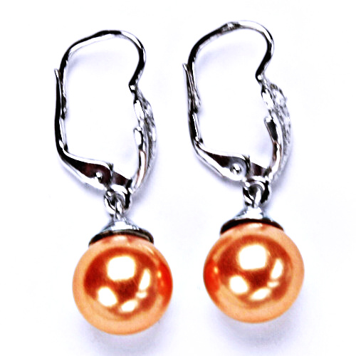 stříbrné náušnice s umělou lososovou perlou, patent, šperky NK 1193/9