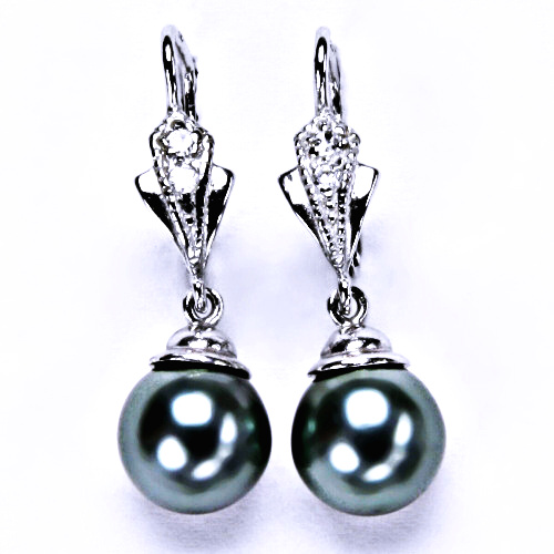 stříbrné náušnice s umělou zelenošedou perlou, patent, šperky NK 1193/9