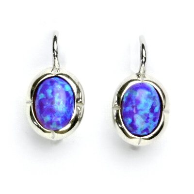 Stříbrné náušnice na klasické patentové zapínání zdobí syntetický opál velikosti 8 x 6 mm .