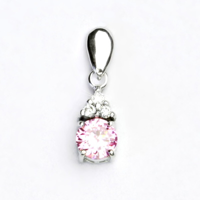 Stříbrný přívěsek , čiré zirkony a růžový zirkon 6 mm - VP 126
