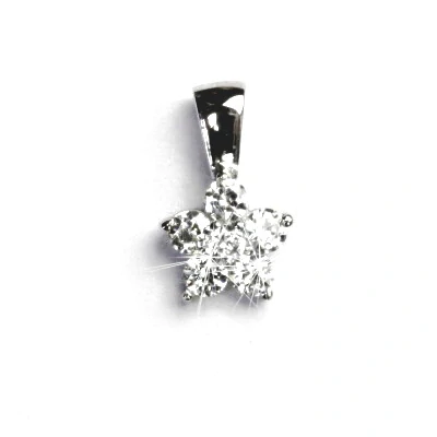 Stříbrný přívěsek ve tvaru kytičky je zdoben čirými zirkony o průměru 3 mm.