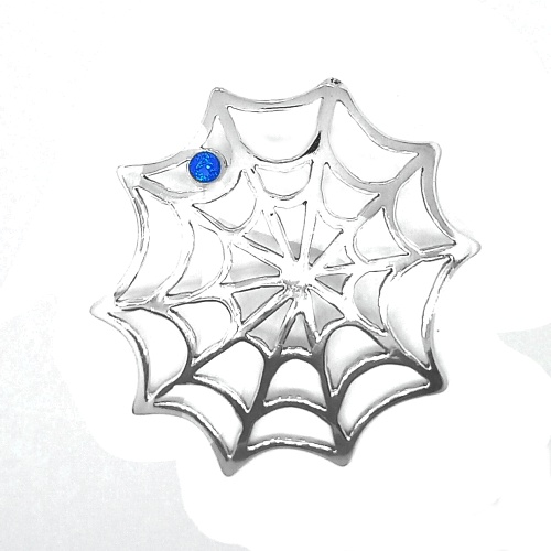 Stříbrný přívěšek ve tvaru pavučiny zdobí zirkon spinel .