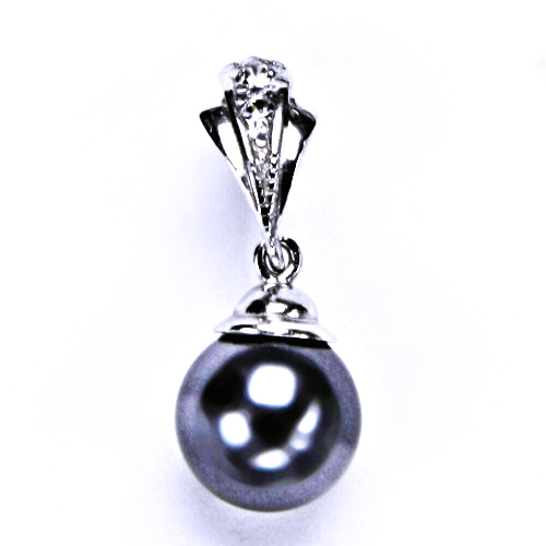perla umělá černo šedá 10 mm, stříbrný přívěšek, šperky