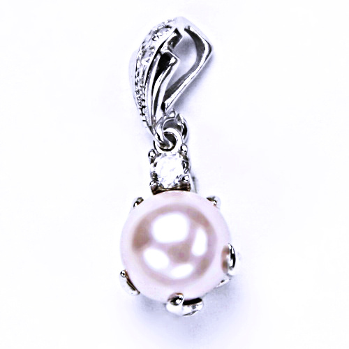umělá perla 10 mm růžová, stříbrný přívěšek , šperky