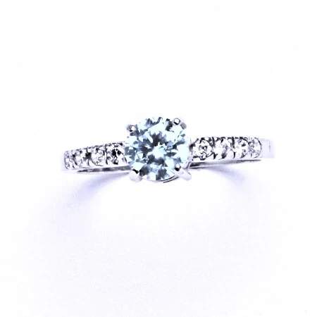Stříbrný prstýnek zdobí čiré zirkony o průměru 1,75 mm a zirkon akvamarin o průměru 6 mm