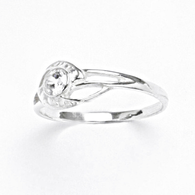 Stříbrný prsten zdobí čirý zirkon o velikosti 4 mm.
