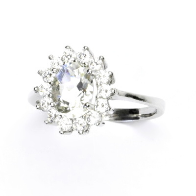 Stříbrný prsten Kate,přírodní green ametyst a zirkony - T 1507