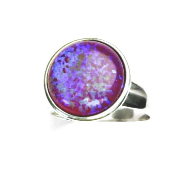 Stříbrný prsten , fialový syntetický opál - T 1372