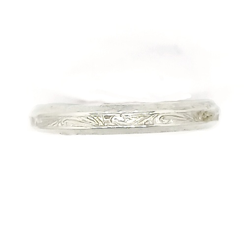 Stříbrný prsten zdobí rytina po celém obvodu.