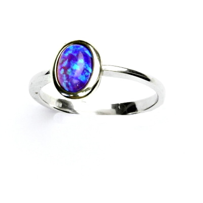 Stříbrný prsten je zdoben syntetickým opálem o rozměru 7 x 5 mm.