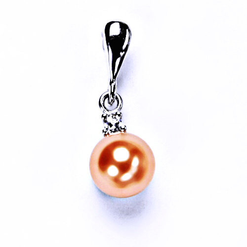 stříbrný šperk přívěšek s umělou lososovou perlou, šperky,P 1207/22