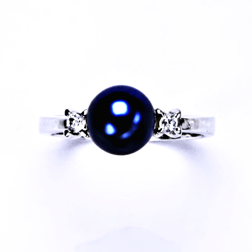 umělá perla modrá 8 mm, stříbrný šperk prsten