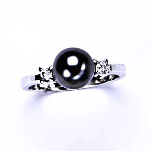 umělá perla černo šedá 8 mm, stříbrný šperk prsten