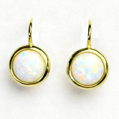 Zlaté náušnice na patentové zapínání zdobí syntetický bílý opál