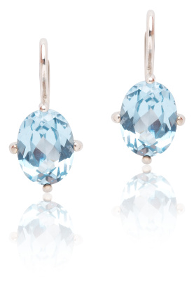 Zlaté náušnice na patentové zapínání zdobí syntetický zirkon akvamarin