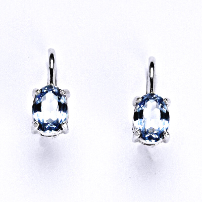 Zlaté náušnice ,bílé i žluté zlato , modrý zirkon 7x5 mm, barva akvamarin - NK 1246