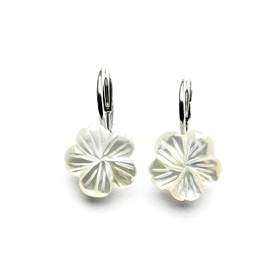 Zlaté náušnice kytičky jsou vyřezány z přírodní perletě bílé barvy.